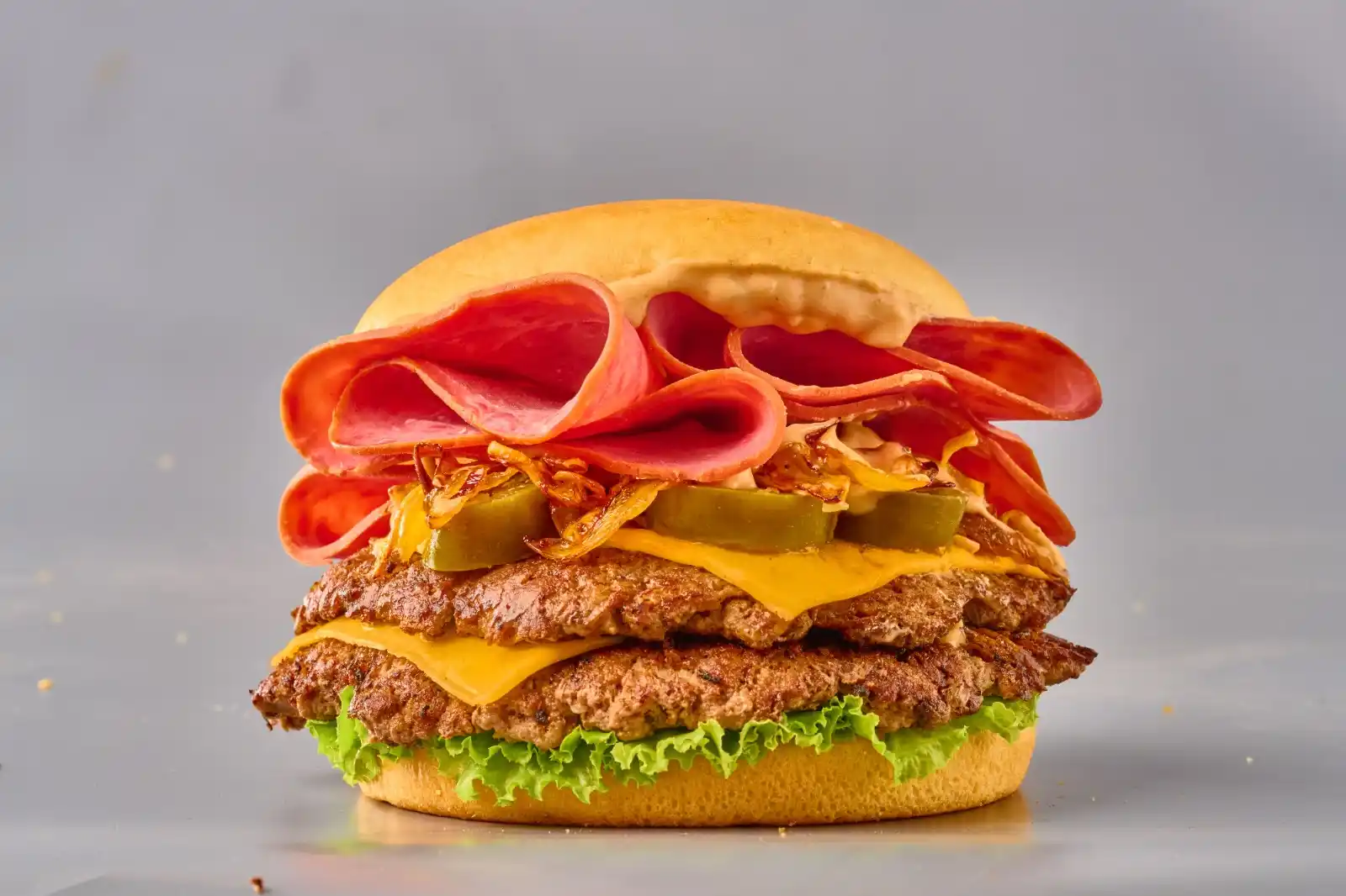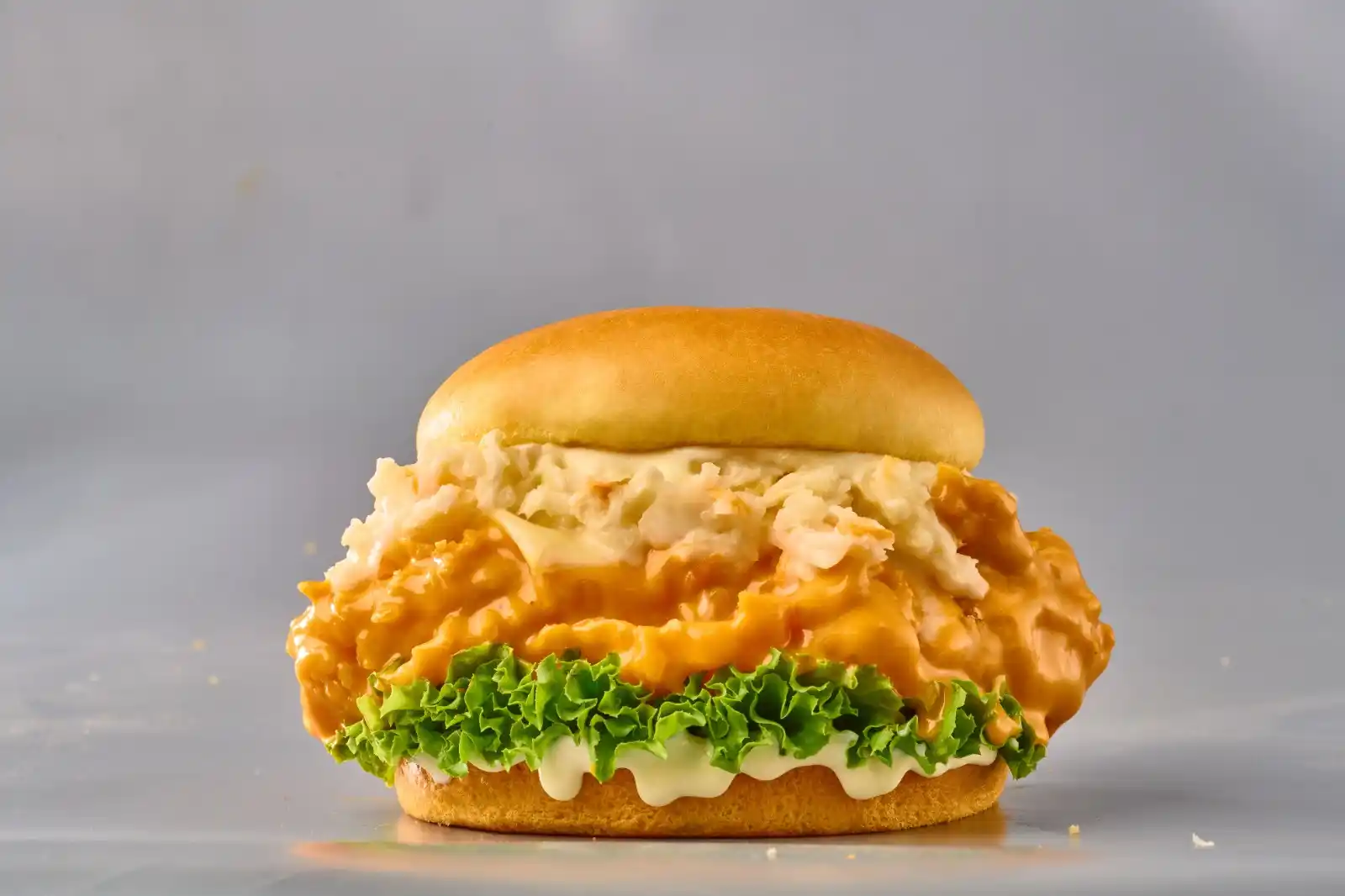 صدر دجاج مقرمش سبايسي + شريحة جبن + بيف بيكون + صوص رقوقة الخاص + خس + شرائح هلابينو